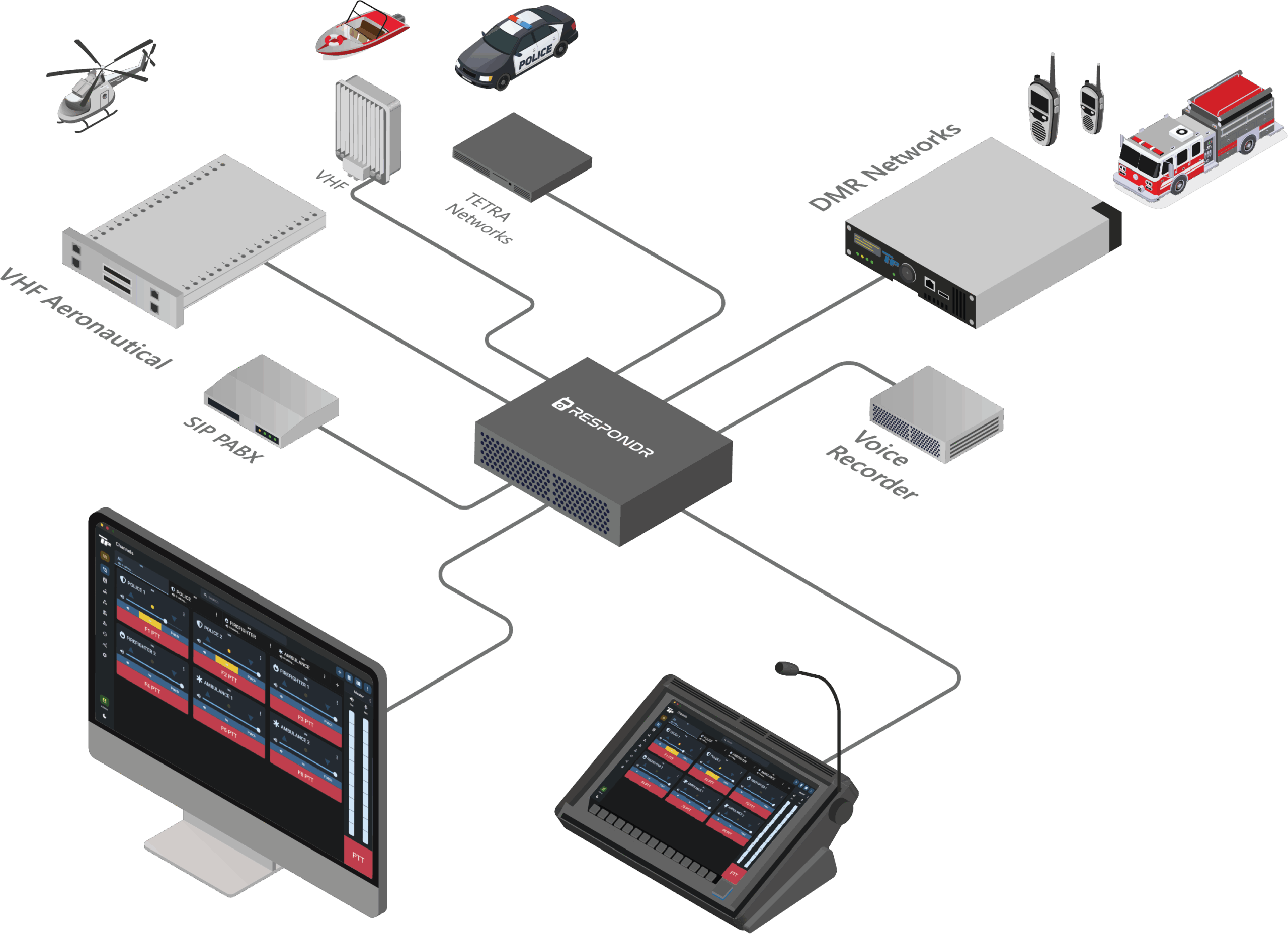 The solution fully complies with industry regulations and directives. Encryption ensures protection for radio communications.
